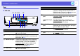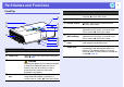 Part Names and Functions f EMP-260 Name A I HGF E B Name D C Function A Remote receiver Receives signals from the remote control. s Quick Start Guide B Security slot (j) The security slot is compatible with the Microsaver Security System manufactured by Kensington. s p.21 C Power inlet Connects to the power cable. s Quick Start Guide D Monitor Out port Outputs the image signal from the computer connected to the Computer input port to an external monitor.