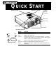 EMP-710/700/500 QUICK START operation panel remote control receiver operation indicator zoom ring focus ring speaker front foot foot adjust lever Power Help Source Keysto Enter Select Button Function Power Turns the projector on or off. Help Displays the Help menu. Source Switches the image source in order of computer → S-video → composite video. If there is no S-video input, the switch toggles between computer and composite video.