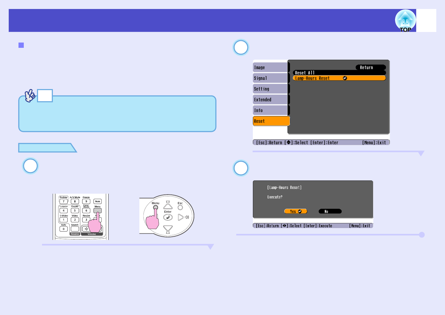 Select "Lamp-Hours Reset" from the "Reset" menu