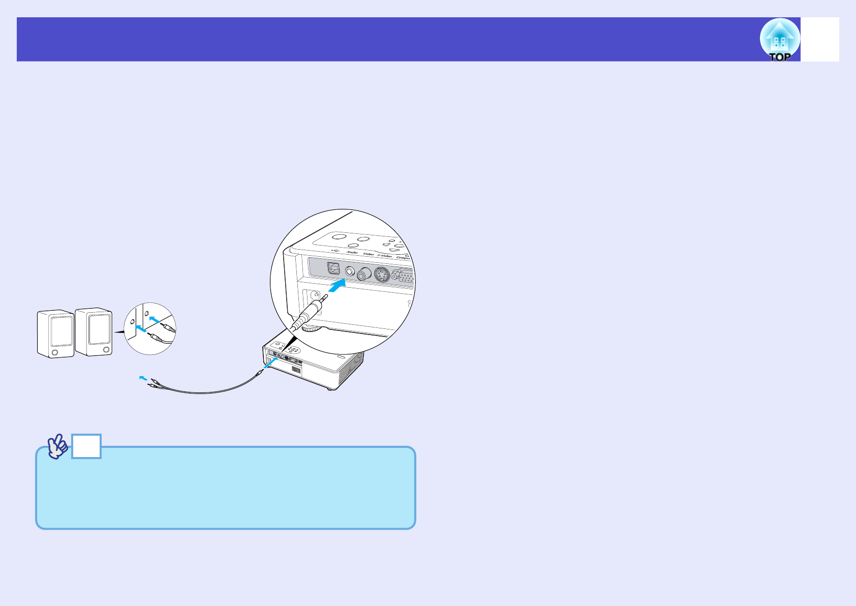 amplifiers to the projector's [Audio] port in order to enjoy a fuller quality of