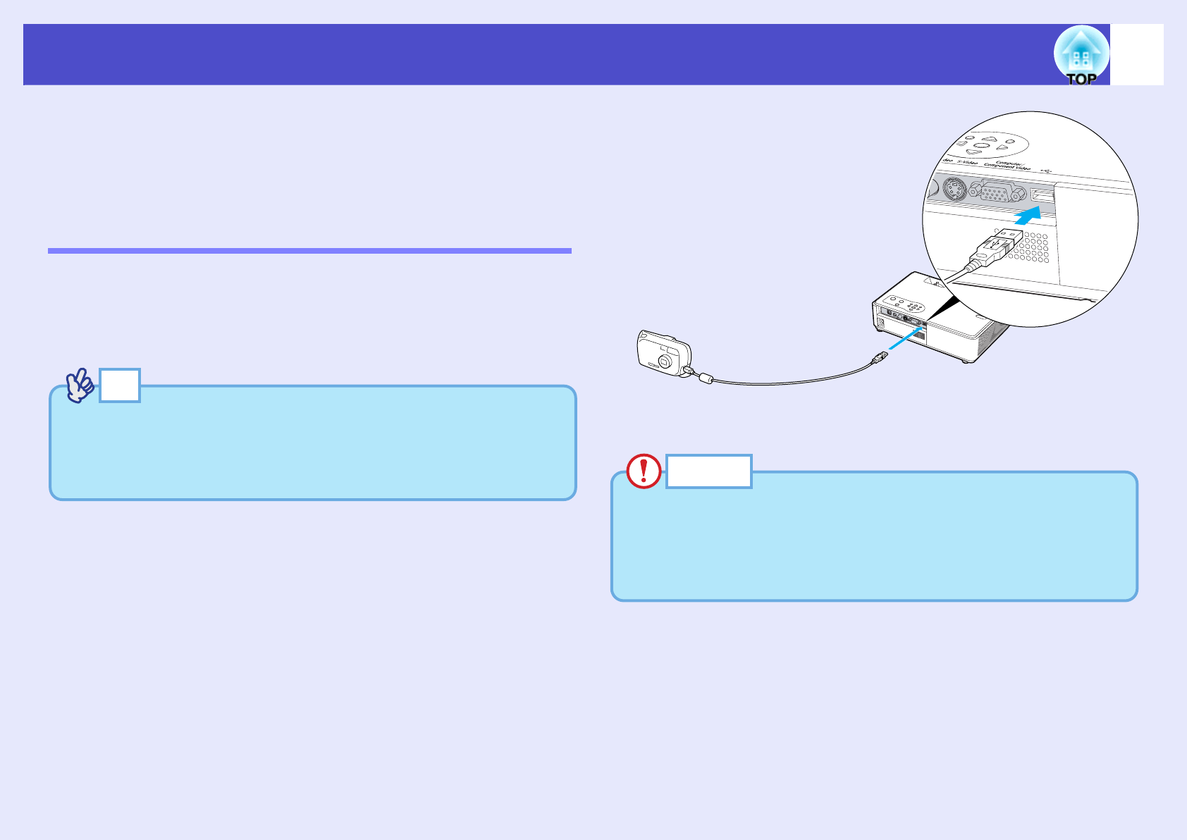 Connect a digital camera to the projector using a USB cable provided with,