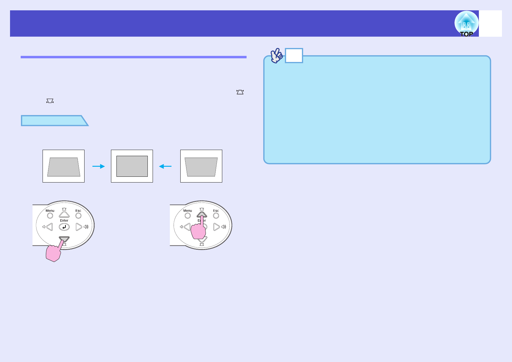 •If the text part of the image is blurred after keystone correction is