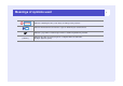 8 Main EMP Monitor window Understanding the projector list The projector list uses the following icons to show the projector statuses. Status:Shows the projector status. Power on and normal status Power off and normal status Power on and abnormal status Power off and abnormal status Network error (such as not connected to network or power cord not connected) Name:Shows the projector name. Image source:Shows the selected image source.