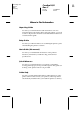 Proof Sign-off: Kimura Nishi Hoadley R Cardinal U/G Rev. C _______ _______ _______ A5 size 11/6/98 APPE.FM Pass 0 Your Dealer Don’t forget that your dealer can often help identify and resolve problems. The dealer should always be the first call for advice on problems. They can often solve problems quickly and easily as well as give you advice on the next step to take. EPSON Helpdesk EPSON Helpdesk is provided as a final backup to make sure our clients have access to advice.