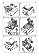 English Attaching the Connector Cover Follow the steps below to attach the connector cover to protect the cables. Note: The connector cover has 3 cable exits in different directions. When pulling out the cables whose connector does not lock itself (USB cable and DC 5 V cable) from the cable exits on the back, fix the cables with the cable band to prevent the cables from coming off. (See illustration B on page ii.) 1. Turn over the printer. 2.