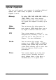 SETUP function keys (continued) Key Function F5 or- Selects the previousvalue F6 or + or Selects the next value Spacebar F9 Loads the factory default values for the SETUP options on the current Screen F10 Ignoresany changesyou have made on the current Screen Enter Selects the current option or value Esc or Alt X Returnsto the previousscreen Whenever you are in SETUP, the bottom of the screen lists the keys you can press to perform specific functions.