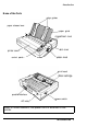 Introduction Name of the Parts edge guides paper release lever paper guide compartment cover slot cover printer cover control panel platen knob print head ribbon cartridge parallel interface power switch AC inlet Note: In some locations, the power cord is attached to the printer.
