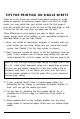 TIPS FOR PRINTING ON SINGLE SHEETS There are a few things you should know about printing on single sheets as opposed to continuous paper. When you print on single sheets, you may notice that your printer prints the first page of your file correctly but then prints too low on the next page, or that it prints the last few lines from one page onto the next.