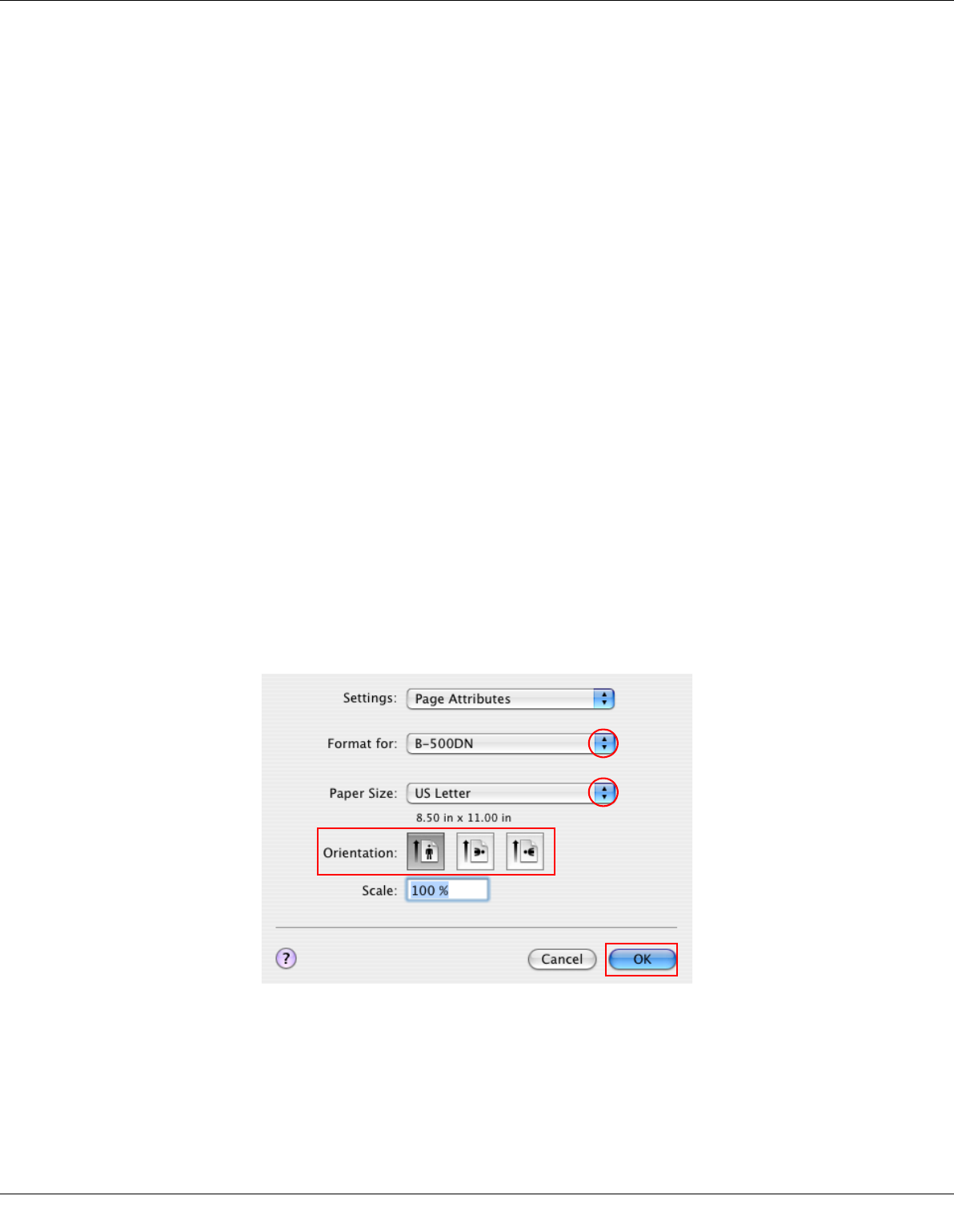 8. Select the appropriate Orientation setting, and click OK to close the Page Setup dialog.