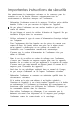 Importantes instructions de sécurité Lire attentivement les instructions suivantes et les conserver pour les consulter en cas de besoin. Observer soigneusement tous les avertissements et directives marques sur l’ordinateur. . Debrancher l’ordinateur avant de le nettoyer. N’utiliser qu’un chiffon humide. Veiller a ne pas renverser de liquides sur l’appareil. . Ne pas placer l’ordinateur sur une surface instable ni prés d'une source de chaleur. .