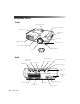 Bottom Mounting bracket attachment points Optional cable cover attachment points (brass colored) Projector Control Panel Top control panel Side control panel Menu navigation button Power button Source button Switches the video input source Warning lights Menu button Displays the menus Enter button Selects menu items or opens the line menu Esc button Exits the current menu item Introduction 9