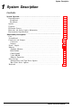 System Description System Description Contents System Overview. . . . . . . . . . . . . . . . . . . . . . . . . . . . . . . . . . . . . . . . . . . . . . . . . . . GeneralFeatures . . . . . . . . . . . . . . . . . . . . . . . . . . . . . . . . . . . . . . . . . . . . . . . . . . FrontPanel . . . . . . . . . . . . . . . . . . . . . . . . . . . . . . . . . . . . . . . . . . . . . . . . . . . . RearPanel . . . . . . . . . . . . . . . . . . . . . . . . . . . . . . . . . . . . . . . . . . . . . . . . . . . . .
