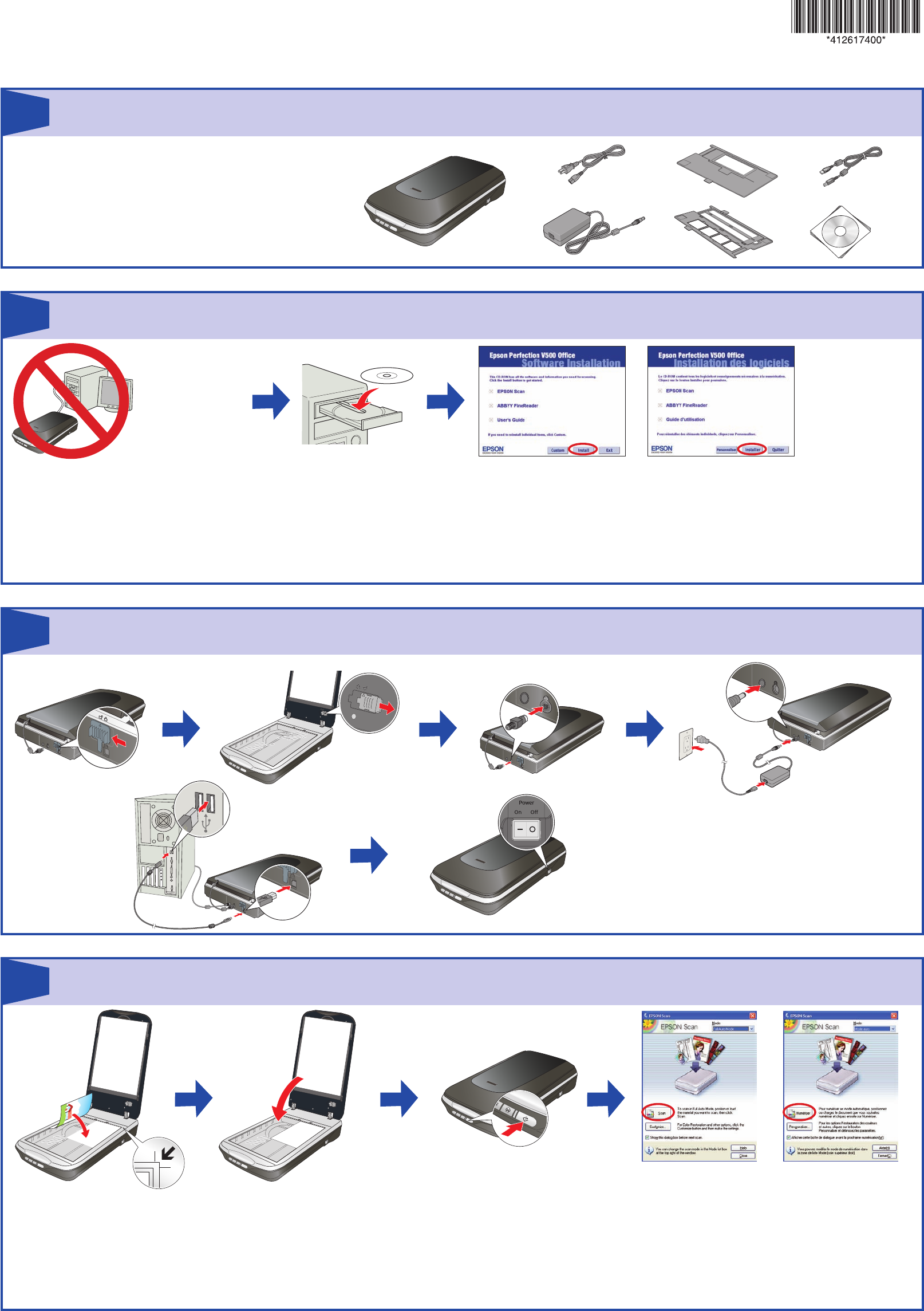 Connect and turn on • Mettez le scanner sous tension • Encienda el escáner