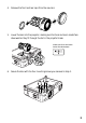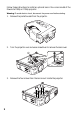 4. Remove the front and rear caps from the new lens. 5. Lower the lens into the projector, making sure the focus and zoom knobs face downward so they fit through the slot in the projector’s case. Make sure focus and zoom knobs face downward. 6. Secure the lens with the four mounting screws you removed in step 3.