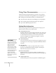 Operating Your Computer with the Remote Control If you’ve connected a computer to the projector with a USB cable, as described on page 22, you can use the remote control in place of your computer’s mouse. This gives you more flexibility when delivering PowerPoint and other slideshow-style presentations, since you won’t have to stand next to the computer to change slides. Use to move cursor Left-click ■ Use the pointer button to move the cursor on the screen.