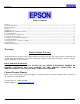 INSTALLATION MANUAL ELPMBUNI EPSON AMERICA, INC. INDIANAPOLIS DISTRIBUTION CENTER 2350 Stafford Road Suite 101 Plainfield, IN 46168 IN-ELPMBUNI.