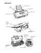 Printer Parts paper support edge guides control panel printer cover sheet feeder paper thickness lever power switch parallel interface connector print head unit release lever thickness adjustment lever print head unit ink cartridge clamp
