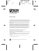 Proof Sign-off: Mary Nancy Moira Cindy Hudson User’s Guide _______ _______ _______ _______ A5 size 10-28-95 Front DR, pass 2-Rev1 part #4004913-01 R title page stylusc0 COLOR INK JET PRINTER User’s Guide All rights reserved. No part of this publication may be reproduced, stored in a retrieval system, or transmitted in any form or by any means, electronic, mechanical, photocopying, recording, or otherwise, without the prior written permission of Seiko Epson Corporation.