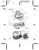 L Proof Sign-off: Writer Moira Mary Cindy _______ _______ _______ _______ Hudson User’s Guide A5 size 10-28-95 Inside front cover DR, pass 2-Rev1 Printer Parts edge guides paper support control panel printer cover cover-1t sheet feeder transparency guide output tray extension output tray paper thickness lever power switch cover-2 parallel interface connector print head unit release lever ink cartridge clamp cover-3 thickness adjustment lever print head unit