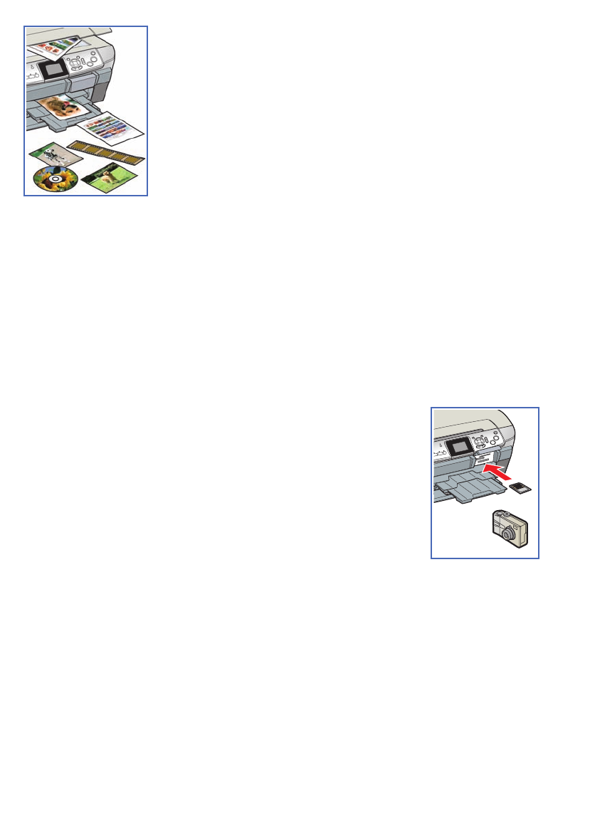 Scan photos, film, and other printed materials. See “Scanning to a Memory Card”
