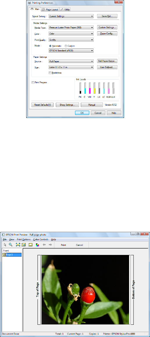 If you select the Print Preview checkbox on the Main tab, you can see how