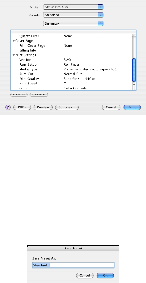 2. Enter the name of the custom setting in the Save Preset As text box.