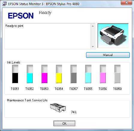 Epson Status Monitor 3 displays detailed information on the printer status.