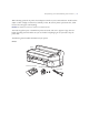 Unpacking and Assembling the Printer | 3 When choosing a place for the printer, leave adequate room for easy access and ventilation. Avoid locations subject to direct sunlight, excessive heat, humidity, or dust. Be sure the printer is placed on a flat, stable location that can support 198 lb (90 kg). Caution: Six people are required to unpack and install the printer. You need a large floor space to assemble the printer and stand, so be sure to prepare a large, clear area before unpacking them.