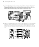 Ajuste del rodillo de alimentación | 23 Ajuste del rodillo de alimentación Después de que configure la impresora, debe ajustar el sistema de alimentación del material. Se requieren dos personas para realizar el ajuste paralelo, una enfrente y otra detrás de la impresora. Abra la tapa frontal y empuje hacia atrás la palanca de carga del papel. 2.