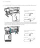 Loading Media | 9 7. Raise the media loading lever, then pull out the media by hand and insert it into the printer. English Note: If the media is heavy and difficult to unroll, press the drive switch on the left roll holder. Press the switch up or down based on the orientation of the paper on the roll. You can also pull out the media manually. Printable side out Printable side in 8. Insert the media past the pressure rollers.
