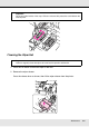 Immediately transfer the used flushing pad to a tray. Ink may leak from the pad.