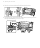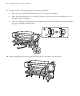 Ajuste del rodillo de alimentación | 23 Ajuste del rodillo de alimentación Después de que configure la impresora, debe ajustar el sistema de alimentación del material. Se requieren dos personas para realizar el ajuste paralelo, una enfrente y otra detrás de la impresora. Abra la tapa frontal y empuje hacia atrás la palanca de carga del papel. 2.