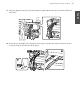 | Ajuste do rolo Ajuste do rolo Após configuração da impressora, o sistema de alimentação de papel deve ser ajustado. São necessárias duas pessoas para ajuste paralelo, uma na frente da impressora e uma atrás. 1. Abra a tampa frontal e empurre a alavanca de carregamento de papel. 2.