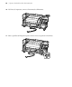 • Puxe de papel para baixo até a margem frontal chegar à etiqueta superior no pós-aquecedor.