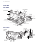 2 | Printer Parts Printer Parts Front - S30670 Front cover Control panel Media loading lever Left maintenance cover Right maintenance cover USB port LAN port After heater AC inlets Cartridge check lights Lock levers Ink cartridges Tensioner Waste ink tube Roll locking screw Waste ink tank Roll support Vent Adjuster Auto switch Manual switch Caster Inside - S30670 Flushing pad Print head in maintenance position Wiper Nozzle caps Wiper cleaner Media holding plate Platen heater Cutter groove