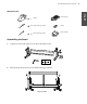 Unpacking and Assembling the Printer | 3 The following items should be included with your printer: English Printer and Stand Assembly (S30670): : Cable supports Translated warning labels Carry bars Power cable (× 2) Waste ink tank Printer Waste ink tank brackets Legs Horizontal struts Hex wrench Software and documentation