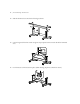 4 | Assembling the Stand 2. Slide the horizontal strut into both of the legs as shown. 3. Use the long end of the hex wrench to tighten the pre-placed screws on each side of the horizontal strut. 4. Lock the casters to fix the stand in place. (When moving the printer, unlock the casters.
