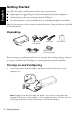 English Getting Started Your WF-100 wireless mobile printer includes these special features: ■ Lightweight but rugged design for professional-quality documents and photos ■ A built-in battery that you can charge from the USB port ■ Easy printing from a variety of mobile devices, including smartphones and tablets Follow the instructions in this section to unpack the printer, charge the battery, install ink, and install software.