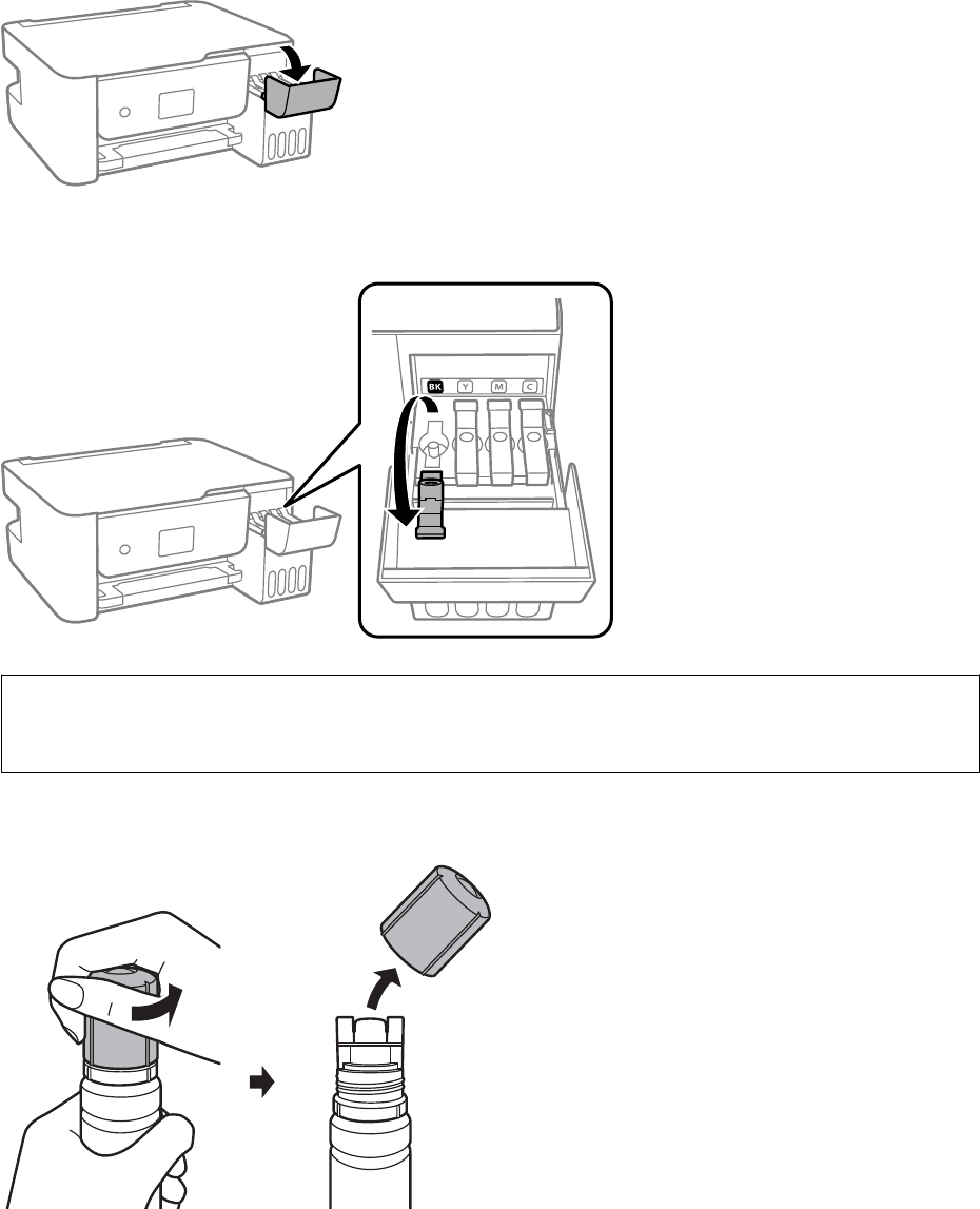 6. While holding the ink bottle upright, turn the cap slowly to remove it.