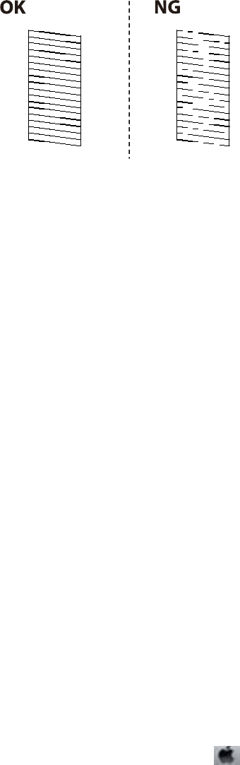 ❏ If there are broken lines or missing segments as shown in the "NG" pattern, the print head nozzles may be