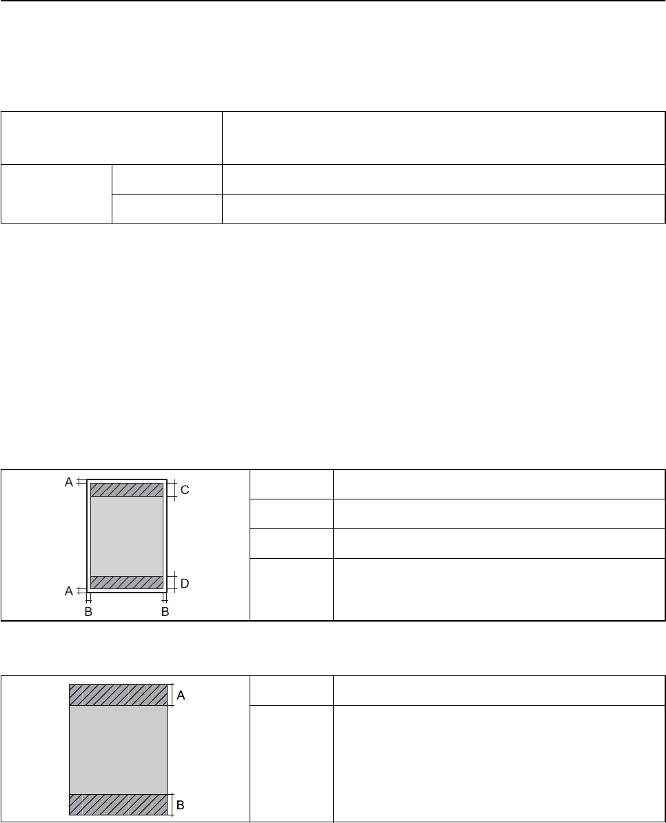 Print quality may decline in the shaded areas due to the printer's mechanism.