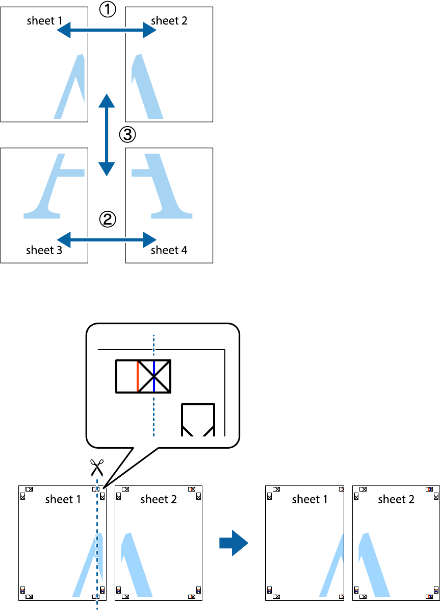 1. Prepare Sheet 1 and Sheet 2. Cut