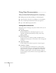 Using the Remote Control note If a button is pressed for longer than 30 seconds, the remote control stops operating to conserve battery power. When you release the button, normal operation resumes. Using the remote control under bright fluorescent lamps or in direct sunlight may affect projector response. Make sure batteries are installed as described on page 86. Follow these tips for using the remote control: ■ Point the remote control at the front or back of the projector, or at the screen.