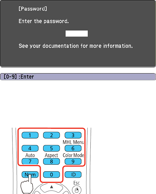 1. Press and hold down the Num button on the remote control while you enter the password using the
