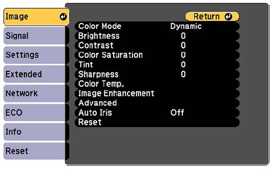 - Projector Setup Settings - ECO Menu