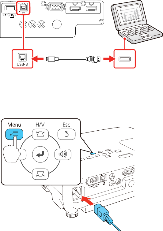 4. Press and hold the Menu button on the control panel or remote control as you connect the power