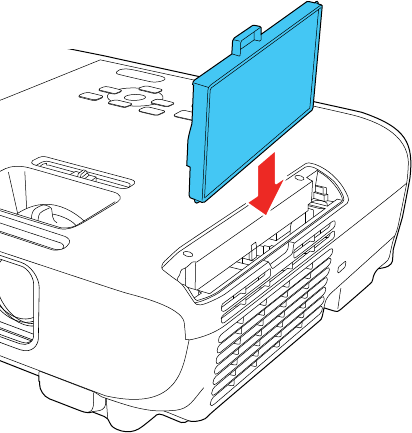 4. Place the new air filter in the projector as shown and push gently until it clicks into place.