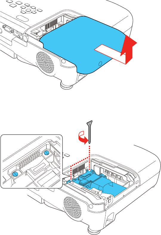 5. Loosen the screws securing the lamp to the projector. The screws do not come all the way out.