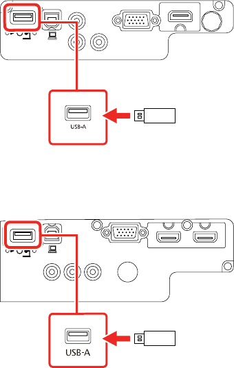4. Insert the USB key into the projector's USB-A port.