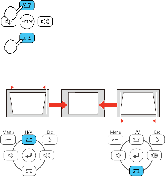 2. Press one of these keystone buttons on the control panel to display the Keystone adjustment
